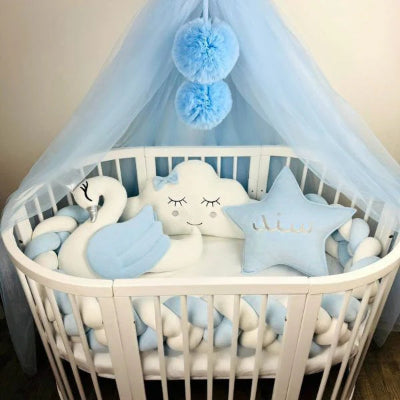 Tour de lit tressé - Gris, bleu et blanc : le cocon parfait pour bébé